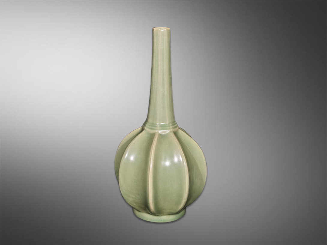 北宋时期,青瓷器艺术达到了高峰,长颈瓶体现了当年的最高制瓷水平和审美观念,瓜棱形的设计蕴含了对自然的崇尚,青釉之色是文人追求雅的审美情趣,这种器型的制作难度非常大,同时烧制成功率很低,以致一千多年来,后世对它的仿造品也几乎没有。因此这尊宝瓶也是研究宋代文化和制造工艺的重要资料。