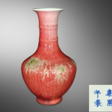 豇豆红铉纹长颈瓶