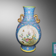 珐琅彩花卉纹开窗双龙耳赏瓶