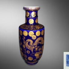 霁兰描金龙凤纹棒槌瓶