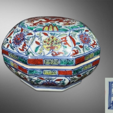 青花五彩六方捧盒