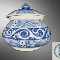 青花网纹鱼篓尊