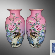 粉彩花鸟纹灯笼瓶一对