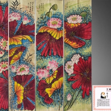 张大千 荷香图四条屏