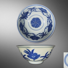 青花秋葵纹碗