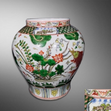 万历五彩鱼藻纹大罐