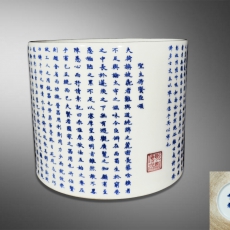 青花釉里红圣主得贤颂笔筒
