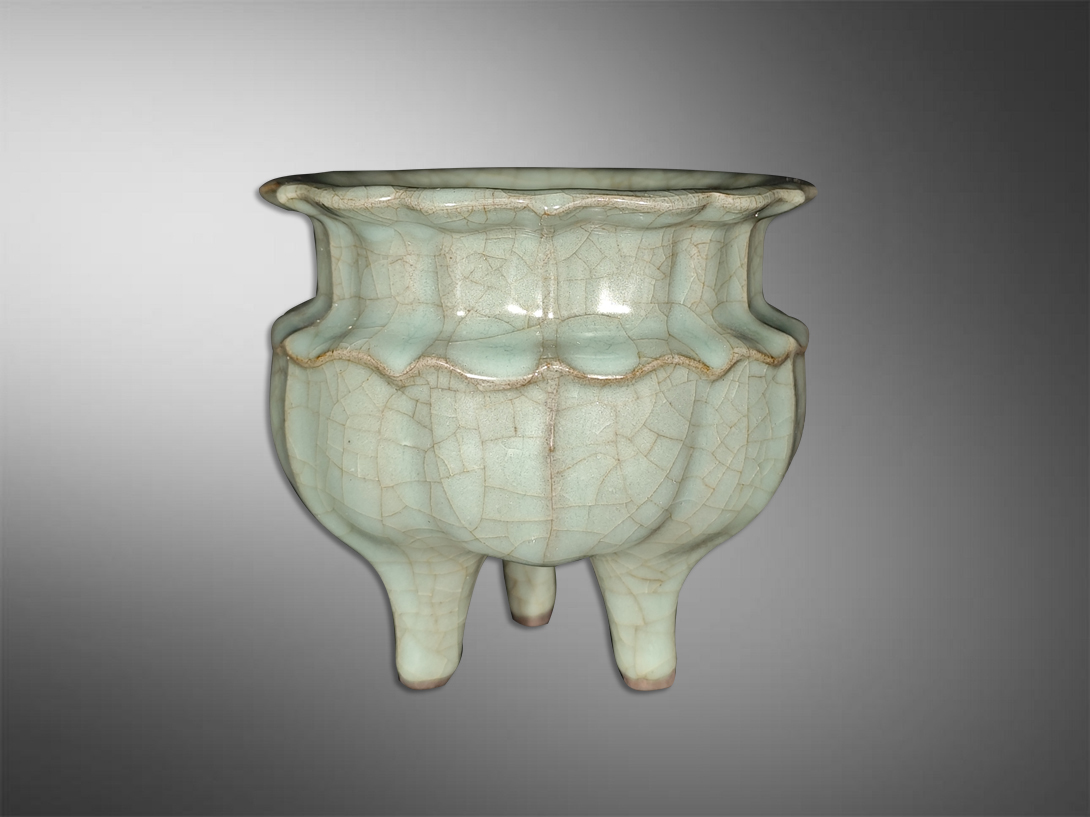 官窑仰莲三足香炉