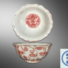 釉里红十棱花口大碗