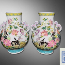 珐琅彩安居乐业双耳尊一对