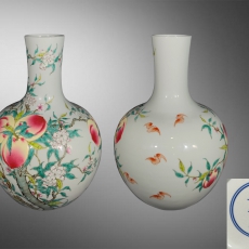 粉彩九桃五福瓶