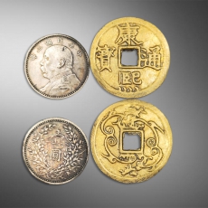 中华民国三年袁大头(中央版).康熙通宝方孔钱(背双龙)