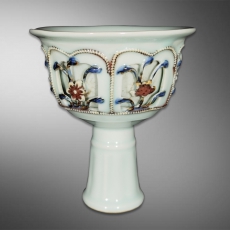 青花釉里红镂空高足杯
