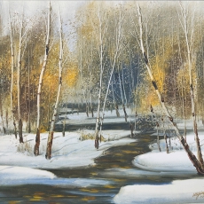 贺一珉 白桦林油画