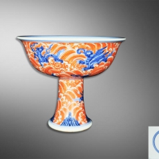 青花矾红龙纹海水江崖高足杯