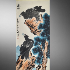 李苦禅 远瞻.鹰松石图