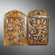 和田玉透雕大力金刚玉牌