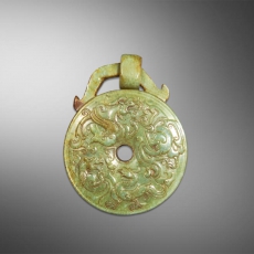 和田玉透雕龙纹出廓币
