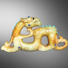 和田白玉龙回头镶嵌宝石