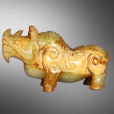 和田白玉乘犀而入圆雕摆件