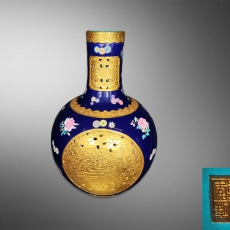 霁兰釉描金孔雀团风纹天球瓶