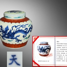 青花龙纹祥云姹紫天字罐
