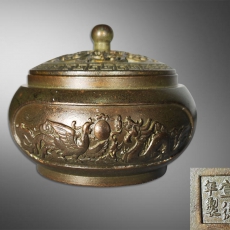 浅浮雕龙凤双全熏炉