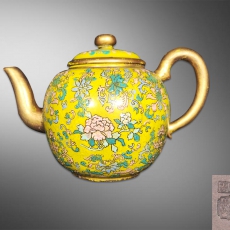 鎏金黄地粉彩紫砂挂釉壶