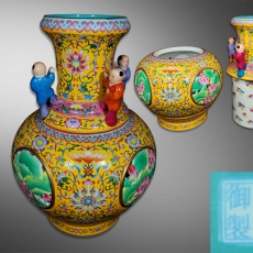 粉彩塑胎蝴蝶纹桃型洗