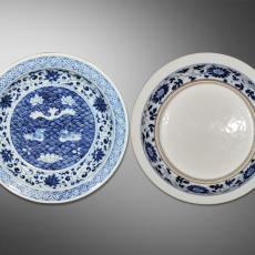 青花海水鸳鸯折口盘