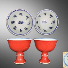霁红釉带经文高足杯