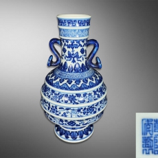 霁蓝釉双师耳尊