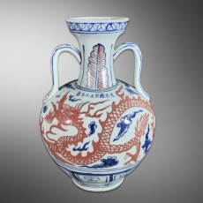 元青花釉里红云龙凤首壶
