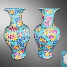 绿地粉彩花卉瓶一对