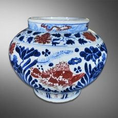 青花釉里红鱼藻纹大罐