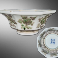 甜白釉里红花卉八方碗