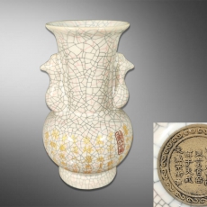 哥窑双凤耳御提诗赏瓶