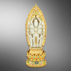 和田玉观音立像(镙丝 景泰兰 宝石)