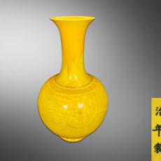黄釉龙凤纹天球瓶