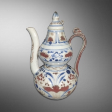 青花釉里红葫芦酒壶