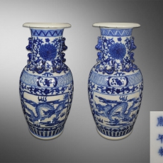 青花双开光龙纹赏瓶一对