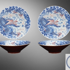 青花釉里红外酱釉龙纹斗笠碗