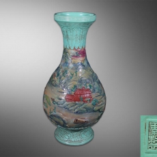 法华彩塑胎山水人物玉壶春瓶