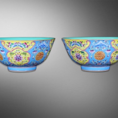 粉彩花卉纹内松石绿供碗