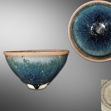 建盏蓝兔毫斗笠碗