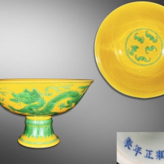 黄釉绿龙高足碗