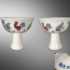 斗彩鸡纹高脚杯一对