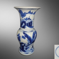 青花山水人物花觚