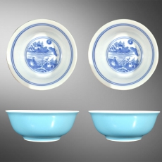 外天蓝内青花人物小碗