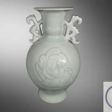 青釉刻胎荷花纹赏瓶